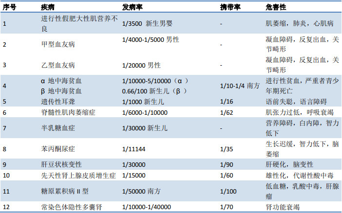 华大医学网站上所列举的十二种,常见单基因遗传性疾病