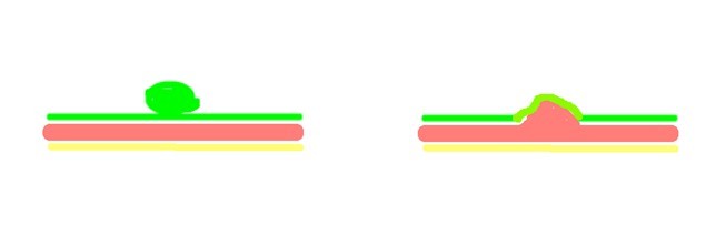 都是隆起的东西,如此区分有什么意义呢?还以水果为例,对于果实,一般很容易摘下来,即便摘不下来,用剪子刀子也很容易拿下来,而不会对果树有损伤。但是如果是树干上鼓起来的东西,要拿下来就很难了,硬拿下来也会对树干造成明显的损伤。息肉因为长于表面,如果比较小,活检钳夹住就可以“揪”下来,稍微大点,还可以用金属圈圈下来。更简单的还可以用橡皮圈圈住根部,等息肉自然缺血坏死脱落。但如果是粘膜下的,活检钳、金属圈或者橡皮圈都钳不到、圈不住。硬要圈,就可能把整层消化道圈进来,这样必然会造成穿孔,很危险。