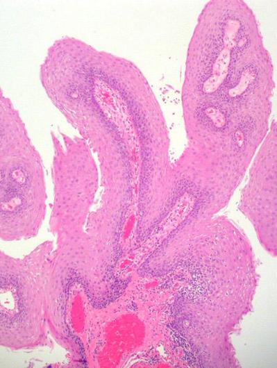 HPV感染后导致细胞增生呈现“乳头状”突起