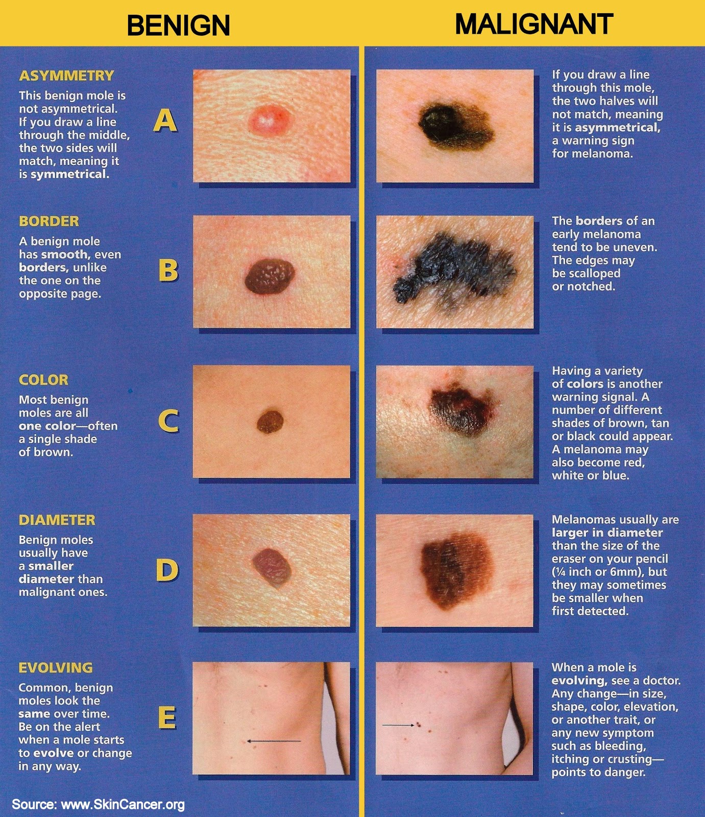 法马博士还在癌症中心新闻发布会上强调:“早期发现皮肤癌对治疗皮肤癌发挥着重要作用。”“熟悉自己的皮肤印记,如痣、雀斑和瑕疵,观察皮肤的任何变化。”法马博士建议每年由外科或皮肤科医师检查一次皮肤,每月自己用镜子检查有无皮肤癌症状。他推荐使用ABCDE皮肤癌法则帮助确定潜在的问题,包括发现最致命的皮肤癌——黑色素瘤。